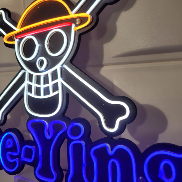 L'esquisse sur pc et le néon assemblé.